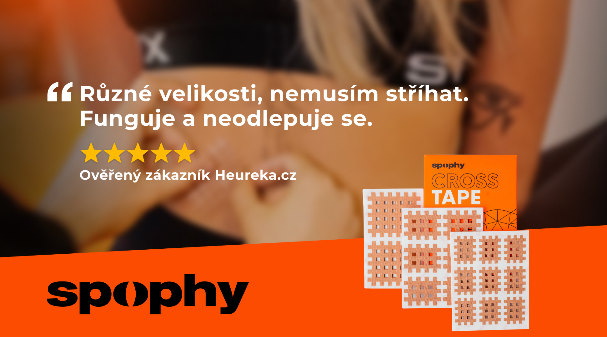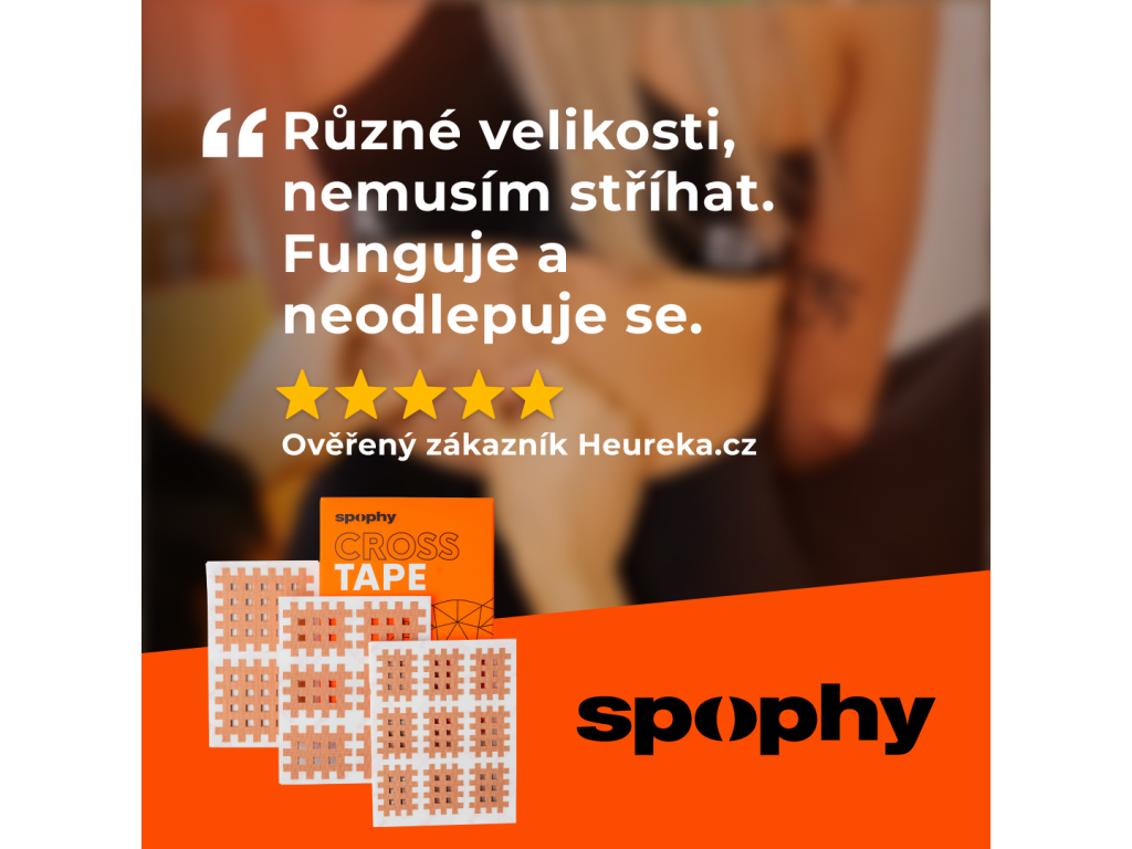 Tejpování vyžaduje patřičné znalosti a praxi. Před prvním použitím Cross Tapu doporučujeme aplikaci konzultovat s Vaším lékařem či terapeutem. Odstraňování Spophy Cross Tape - jemně odlepujte a zároveň přidržujte okolní pokožku.