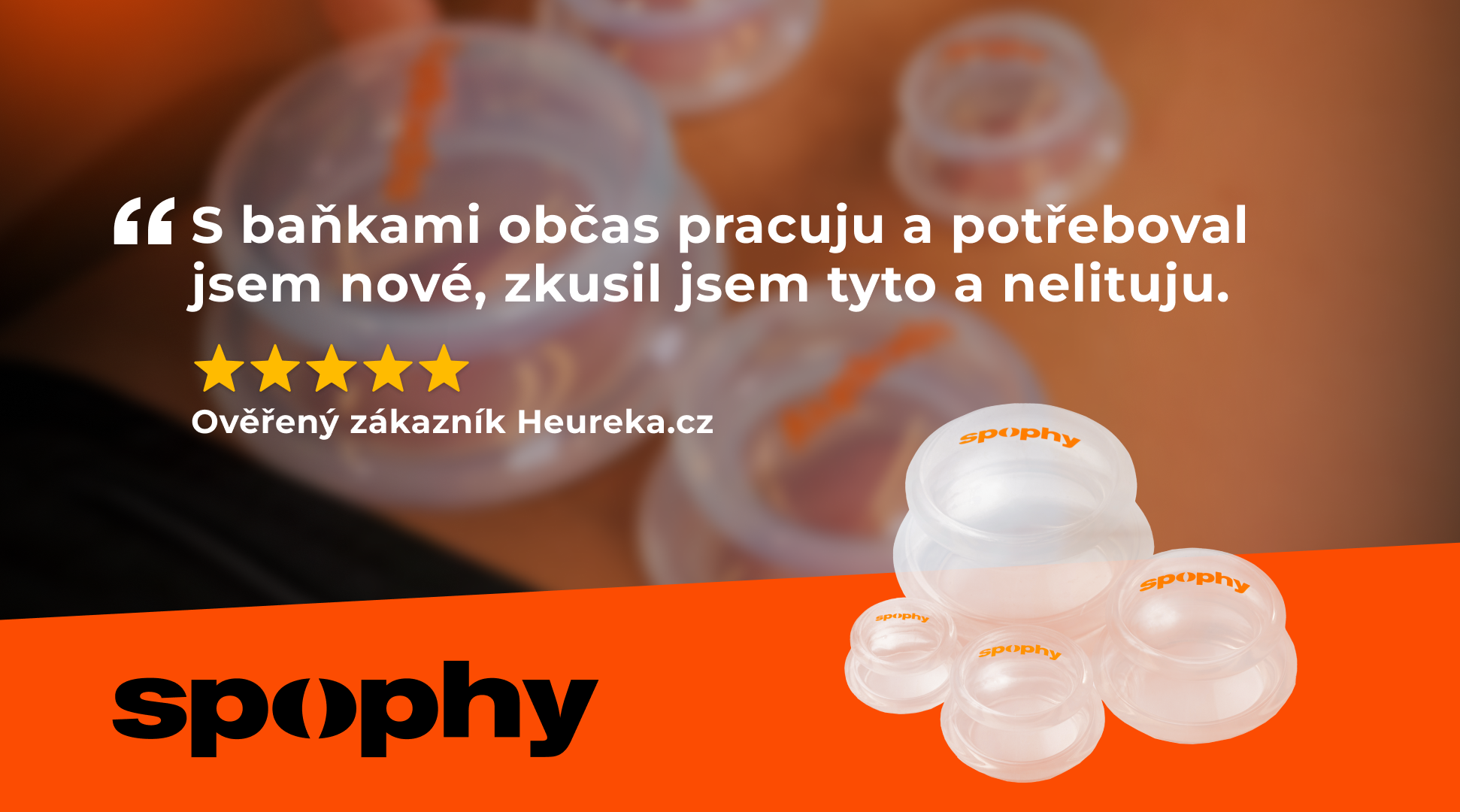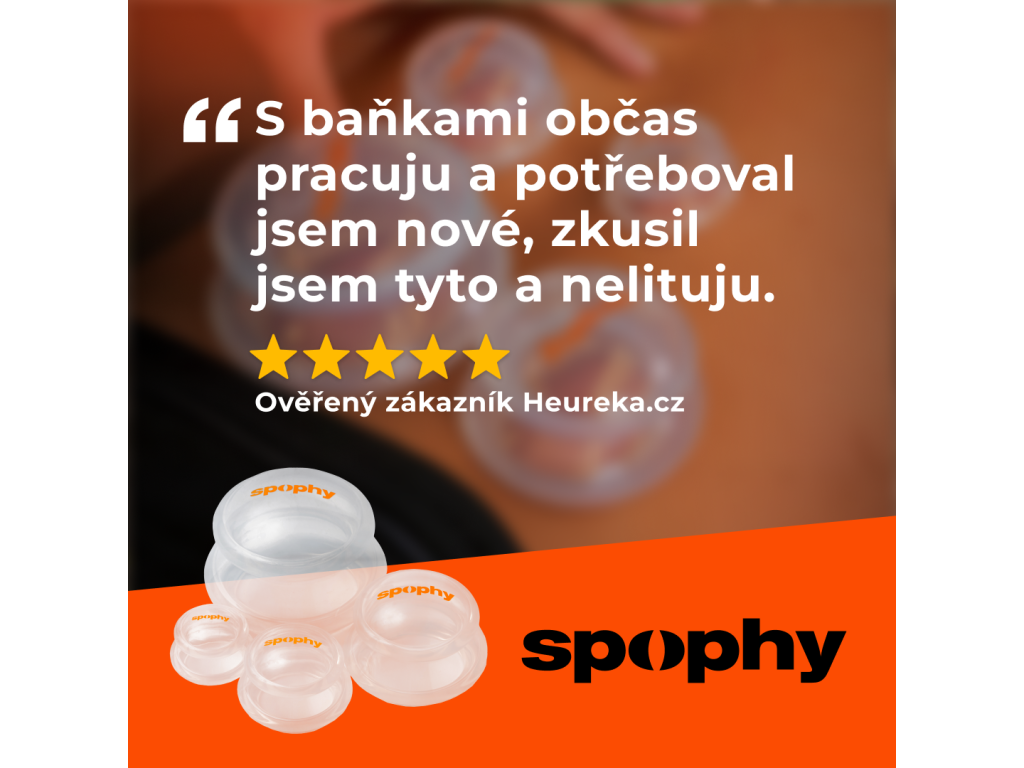 Sada profesionálních baněk Spophy obsahuje 4 baňky vyrobené z lékařského silikonu s různými průměry. Baňkujte efektivně bez použití ohně či vakuové pumpičky. Stiskem vrchní část baňky se docílí optimálního podtlaku, který po přiložení na pokožku zvedá tkáně a stimuluje krevní oběh. Spophy baňky lze využít při masáži fascií, k uvolnění či aktivaci svalů, pro efektivní regeneraci nebo lymfatickou masáž. Při procedurách vycházejících z TCM může docházet k uvolnění meridiánových a energetických drah. Pro urychlení regenerace po sportovním výkonu doporučujeme používat v kombinaci se Spophy Recovery Massage Oil.